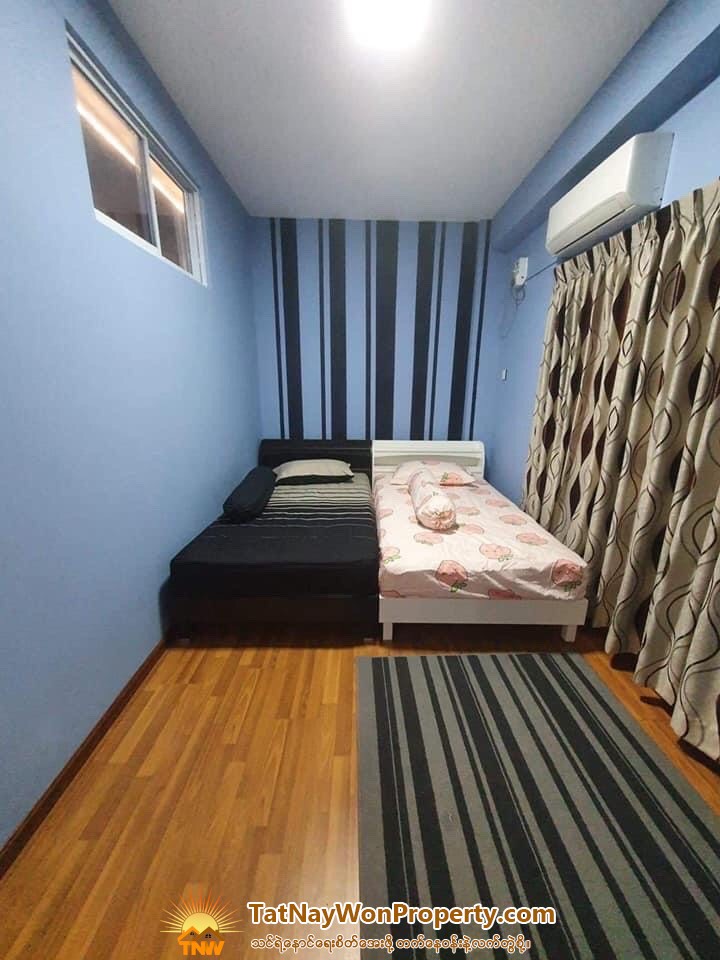 ရန်ကုန်မြို့၊ ဗဟန်းမြို့နယ်၊ ဥဿဖယားလမ်းရှိ သွားလာရေးလွယ်ကူပြီး အေးချမ်းဆိတ်ငြိမ်သော "ဘိုမခြံ" တွင်တည်ရှိပါသည်။ ကျိုက္ကဆံကွင်း၊ ILBC၊ SSC အထူးကုဆေးခန်း၊ ရန်ကင်းစင်တာ၊ Myanmar Plaza အစရှိသောအထင်ကရနေရာများသို့အချိန်တိုအတွင်းသွားရောက်နိုင်ပါသည်။ အကျယ် 1210 sqft တိုက်သက်တမ်း ၃ နှစ် ခြင်လုံဇကာ ၊ စတီးသံပန်း တအီမ်လုံး တပ်ပြီး၊ မီးပြတ်လျှင် မီးလင်းရန် auto inverter and battery အပါ၊ ပိုင်ဆိုင်မှု့ စာချုပ်စာတန်းရုံးထိ အမည်ပေါက် ပထမဆုံး ပိုင်ရှင် အရှုပ်အရှင်းကင်း၊ * 1 living room * 1 master bedroom & w/c * 2 double bedroom * 1 kitchen & dinning room * 1 common bath & w/c ပါဝင်ပါသည်။ (Room Typed Structure ဖြင့်ဖွဲ့စည်းတည်ဆောက်ထားပါသည်။) * မြေညီထပ်ကားပါကင် * MAT foundation * new elevator(Lift) * generator for lift * transformer * over head tank, underground tank * 24 hours security * CCTV security system * up to date fire fighting system * laminated flooring (ကိုရီးယားပါကေး) * ကိုယ်ပိုင်မီတာ + ရေစက် * အီမ်သာ/ရေချိုးခန်း ကြွေပြားခင်း+ကပ်ပါဝင်ပါသည်။ မီးဖိုခန်း မီးဖိုခုံ များကို အပူခံ solid surface countertop များဖြင့် ကြာရှည်ခံအောင် ပြင်ဆင်ပြီး။ 09-5150126